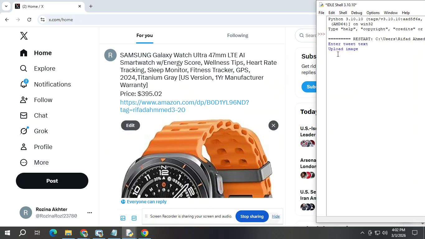 I built a Python bot that turns Amazon products into X posts instantly! πβ¨1οΈβ£ Amazon Scraper: Grabs product info and saves it to CSV.2οΈβ£ Cookie Manager: Stays logged in to X securely without re-entering passwords.3οΈβ£ Auto Poster: Takes the CSV data and posts high quality tweets with images automatically. ππ