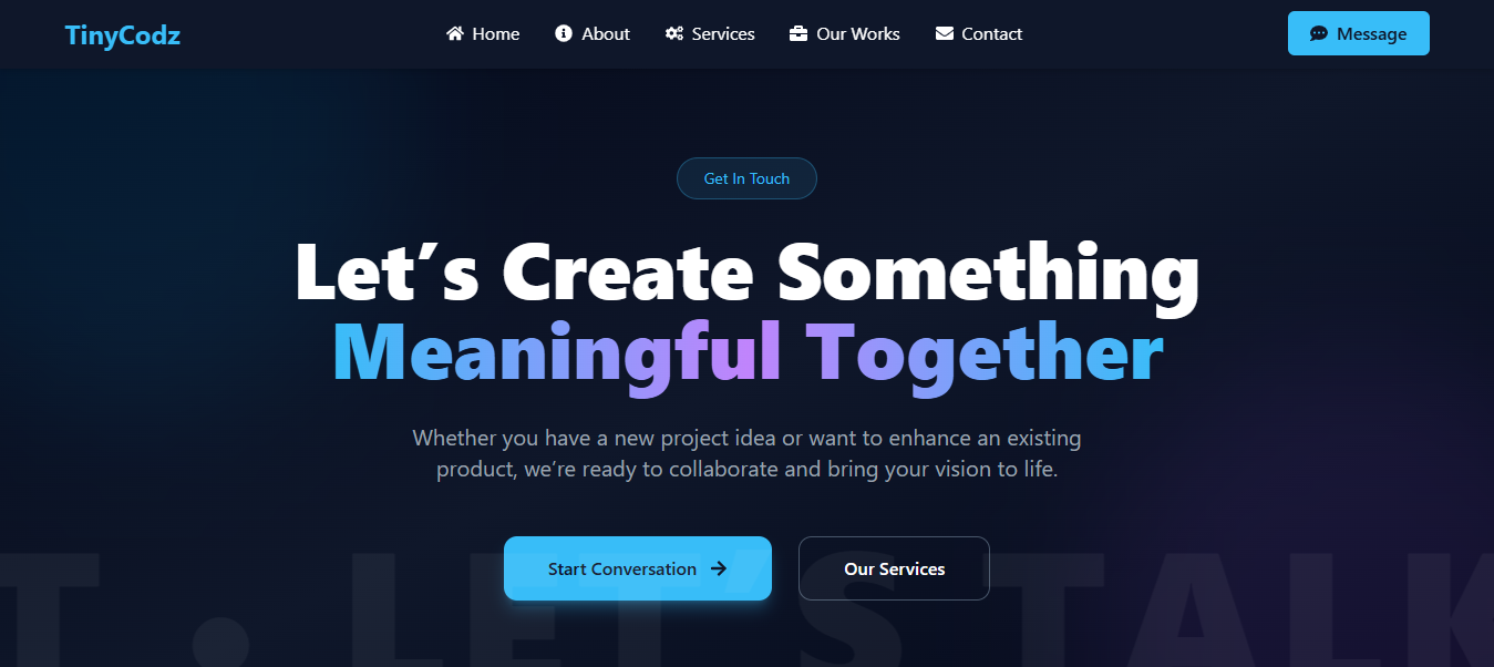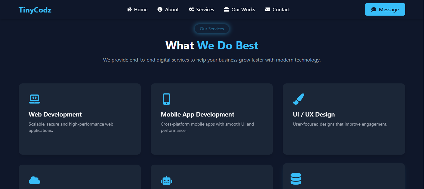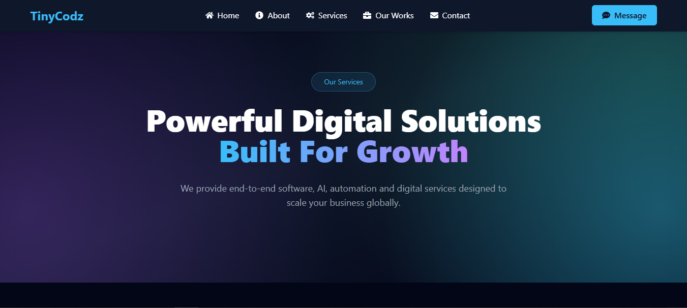 β‘ TinyCodz Your go-to tech partner for: π Web Development - Responsive sites & web apps π² App Development - iOS & Android solutions βοΈ Automation Services - Workflow optimization & bots